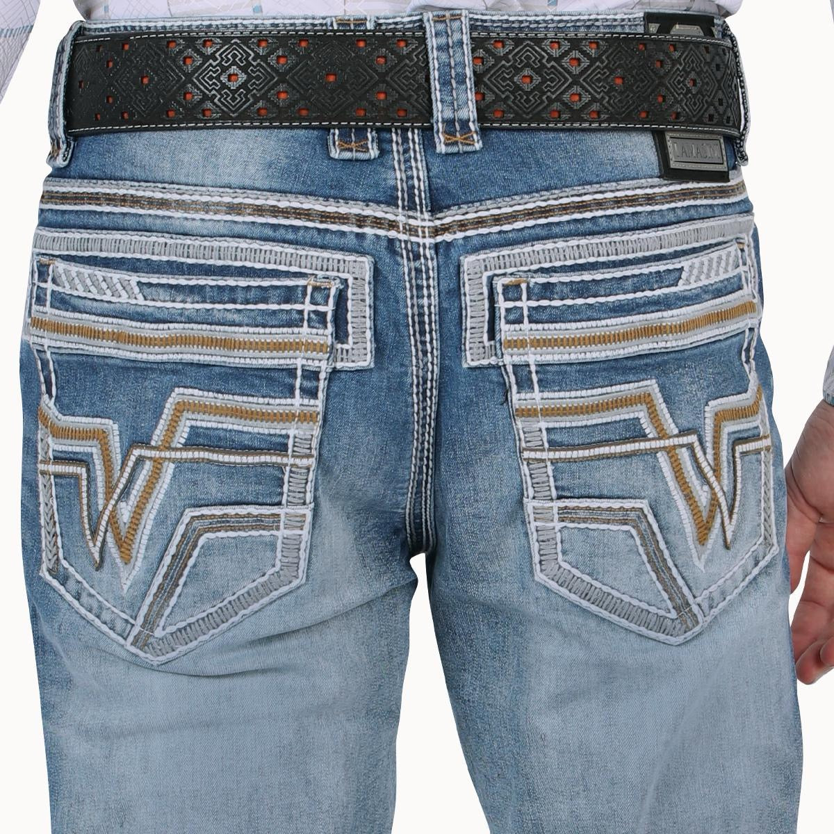 - Elevate you western style with our embroidery MONTERO preen denim Jean ideal for any occacion